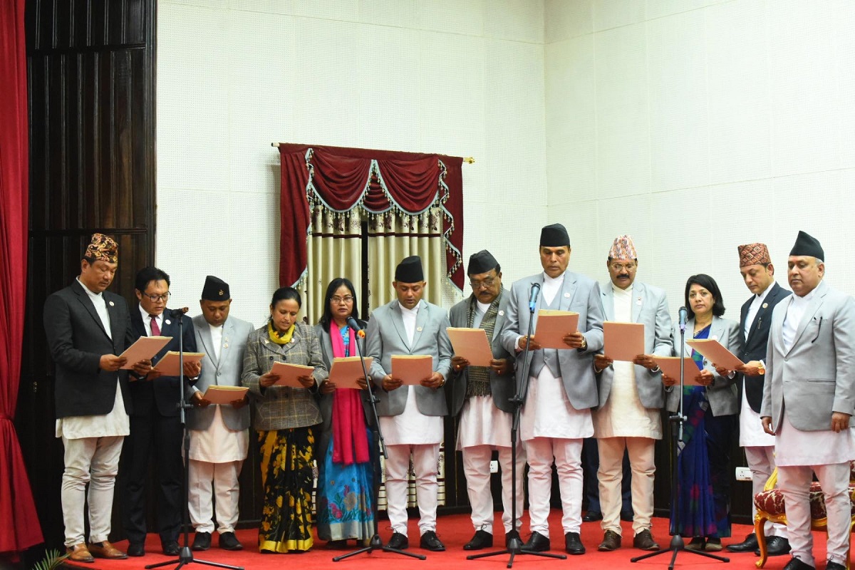 काठमाडौं । नवनियुक्त मन्त्रीहरूले आजै पद तथा गोपनीयताको शपथ लिएका छन् । राष्ट्रपति भवनमा नवनियुक्त मन्त्रीहरूलाई राष्ट्रपति विद्यादेवी भण्डारीले पद तथा गोपनीयताको शपथ गराएकी हुन् । आज राप्रपा अध्यक्ष राजेन्द्र लिङ्देन उपप्रधानमन्त्री बनेका छन् । उनले...