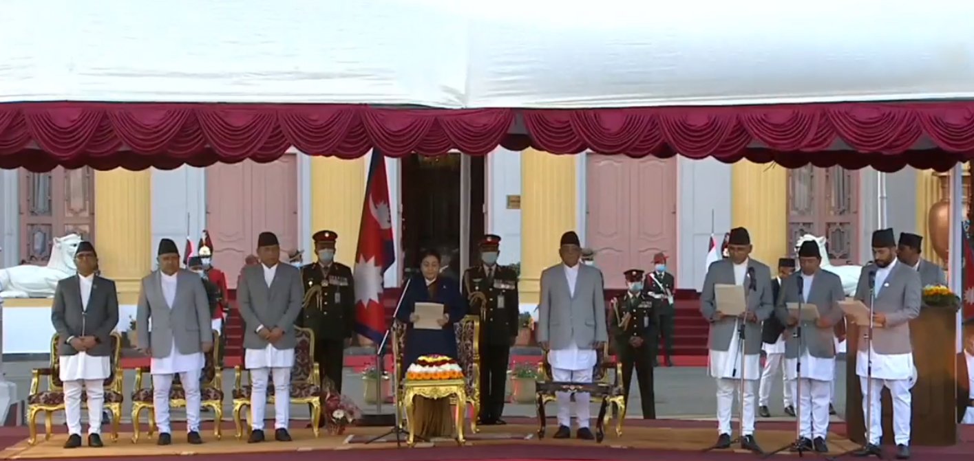 काठमाडौं । प्रधानमन्त्री पुष्पकमल दाहाल ‘प्रचण्ड’ सँग तीन उपप्रधानमन्त्रीले शपथ लिने भएका छन् । नेकपा एमालेबाट विष्णु पौडेल, माओवादी केन्द्रबाट नारायणकाजी श्रेष्ठ र राष्ट्रिय स्वतन्त्र पार्टीबाट रवि लामिछानेले उपप्रधानमन्त्रीको शपथ लिने निश्चित भएको...