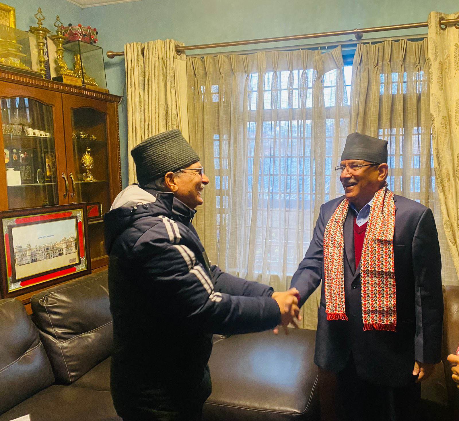 काठमाडौं । नवनियुक्त प्रधानमन्त्री पुष्पकमल दाहाल प्रचण्डलाई पूर्व सहकर्मी डा. बाबुराम भट्टराईले भेटेरै बधाई दिएका छन् । आज बिहान खुमलटार पुगेर डा. भट्टराईले तेस्रो कार्यकाल सफलताको कामना व्यक्त गरे । पत्नी हिसिला यमीसहित खुमलटार पुगेका भट्टराईले अब...