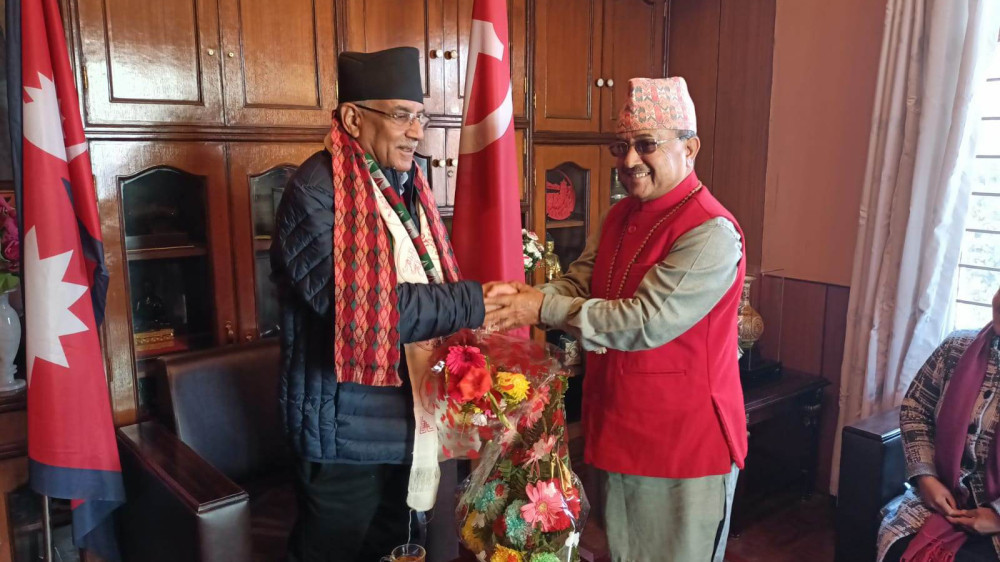 काठमाडौं । नेकपा माओवादी केन्द्रका अध्यक्ष पुष्पकमल दाहाल ‘प्रचण्ड’ र नेपाली कांग्रेसका उपसभापति पूर्णबहादुर खड्काबीच भेटवार्ता भएको छ । माओवादी अध्यक्ष दाहाललाई भेट्न कांग्रेस सभापति खड्का बिहीबार दिउँसो दाहाल निवास खुमलटार पुगेका थिए । दुईजनाबीच निर्वाचनमा...
