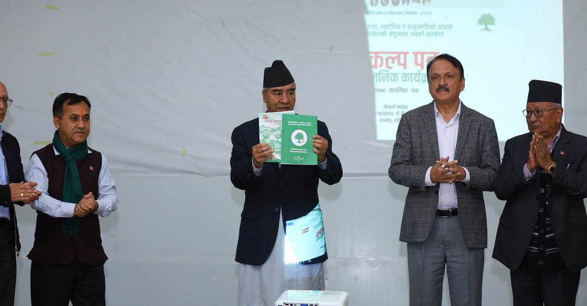 काठमाडौं। नेपाली कांग्रेसले आगामी मङ्सिर ४ गते हुने प्रतिनिधिसभा र प्रदेशका लागि पार्टीको चुनावी सङ्कल्पपत्र (घोषणापत्र) सार्वजनिक गरेको छ । कांग्रेस पार्टी सभापति एवं प्रधानमन्त्री शेरबहादुर देउवाले पार्टी केन्द्रीय कार्यालय सानेपामा आज आयोजित पत्रकार...