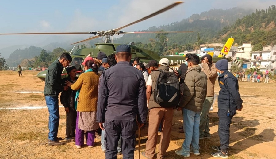 दार्चुला । दार्चुलाको जिप दुर्घटनाका गम्भीर घाइते भएकाहरुलाई थप उपचारका लागि नेपाली सेनाको हेलिकोप्टरमार्फत धनगढी लगिएको छ । दुर्घटनामा परी गम्भीर घाइते जिप चालक सुनिल जोशी, जिपमा सवार उत्तम रोकाया र सन्दीप रावललाई थप उपचारका लागि सेनाको हेलिकोप्टरमार्फत...