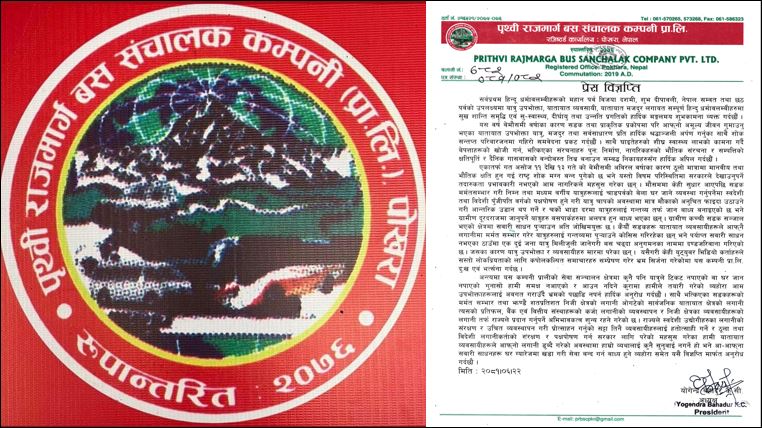 पोखरा । पृथ्वी राजमार्ग बस संचालक कम्पनीले दशैंमा यात्रुले टिकट नै नपाउने अवस्था आफुहरुले आउन नदिने बताएको छ । नेपाली हिन्दु धर्मालम्बीको महान चाड बडा दशैं, दिपावली, नेपाल सम्वत् तथा छठ पर्वको अवसरमो शुभकामना सन्देश जारी गर्दै कम्पनीले सो प्रतिवद्धता...