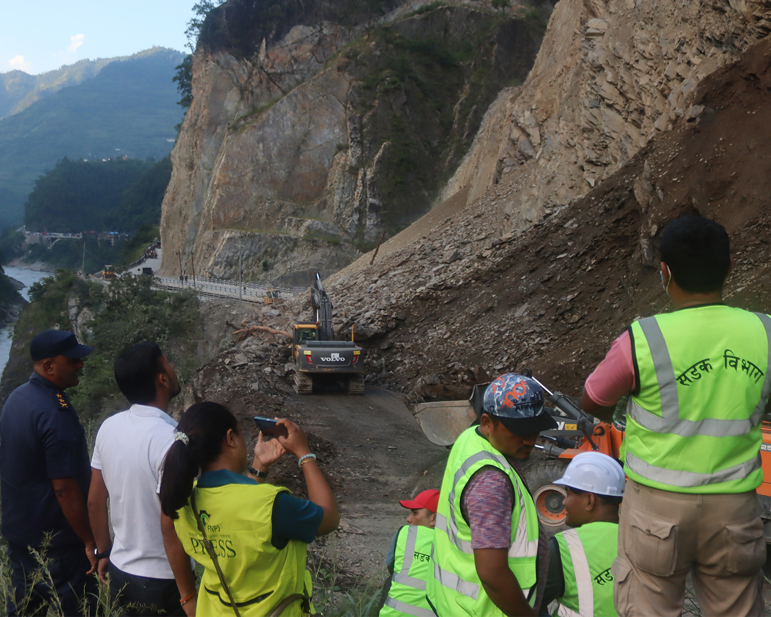 काठमाडौं । नारायणगढ–मुग्लिन सडक खण्डको तुइन खोला नजिकै खसेको पहिरो पन्छाउने कार्य युद्धस्तरमा जारी रहेको छ। हालसम्म करिब ६० प्रतिशत पहिरो हटाइएको र कुनै अवरोध नआएमा बिहीबार रातिसम्म सडक पूर्ण रूपमा सञ्चालनमा ल्याउने आकलन गरिएको हो। सडक डिभिजन कार्यालयका...