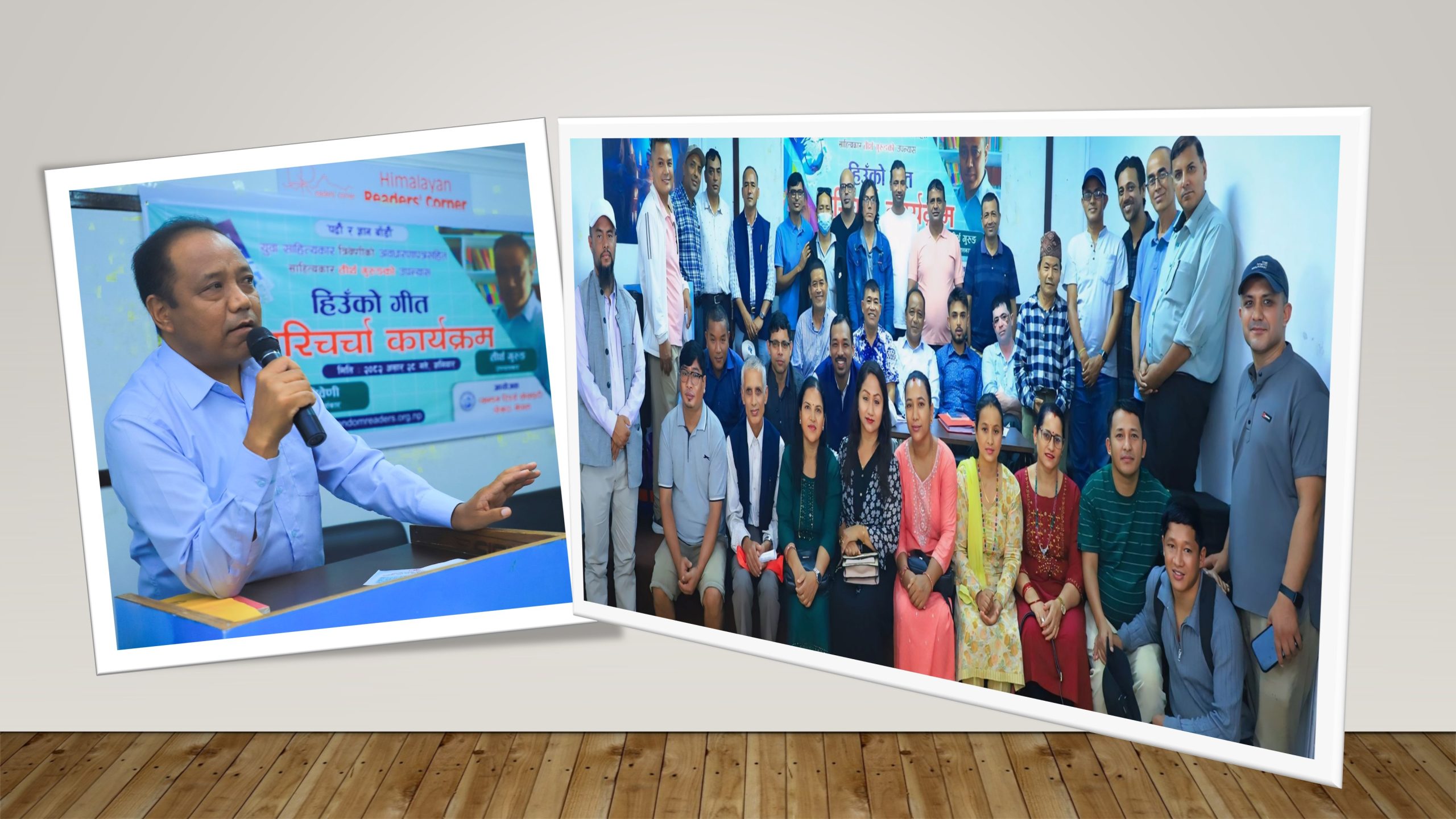 पोखरा । साहित्यकार तीर्थ गुरुङको उपन्यास ‘हिउँको गीत’ को चर्चा गरिएको छ । र्यान्डम रिडर्स सोसाइटीको ११८ औँ नियमित कार्यक्रममा शनिवार उपन्यास ‘हिउँको गीत’ को चर्चा गरिएको हो । सोसाइटीका अध्यक्ष रुपिन्द्र प्रभावीको अध्यक्षतामा भएको कार्यक्रममा युवा...