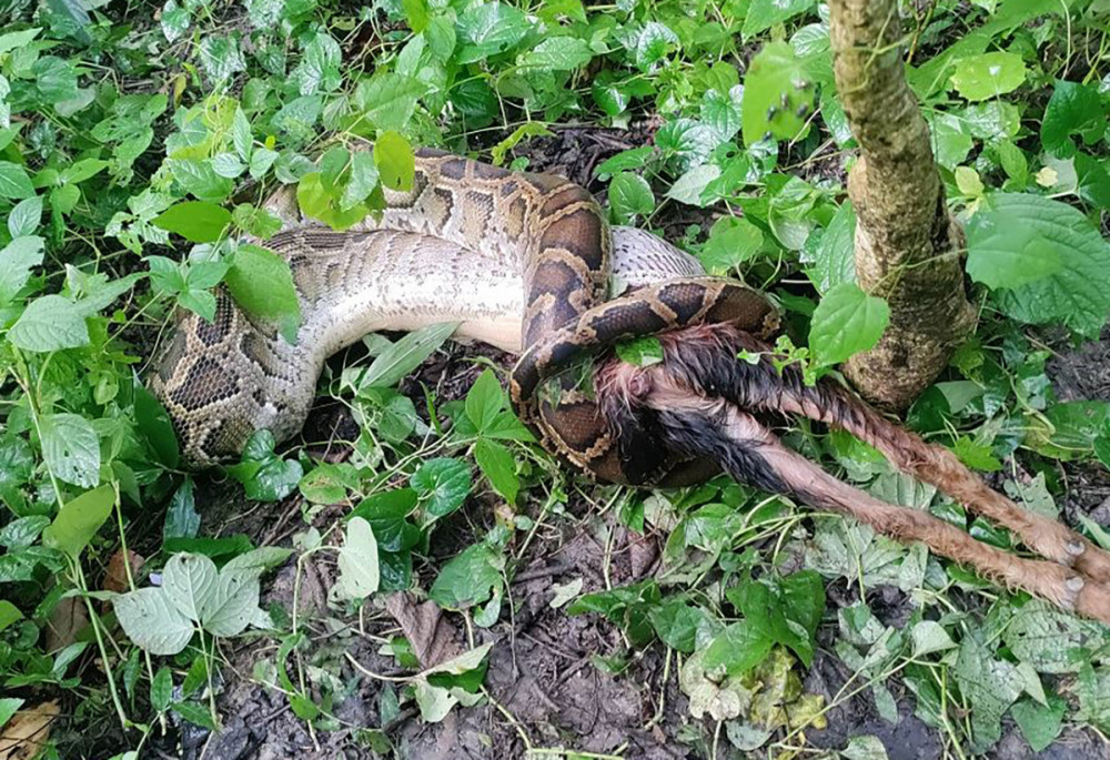 उदयपुर । उदयपुरको चौदण्डीगढी नगरपालिका – ५ सुन्दरपुरस्थित चुरे नजिकैको सगरमाथा सामुदायिक वन उपभोक्ता समूहको जंगलमा सिङ्गै बाख्रा निल्दै गरेको अजिङ्गर भेटिएको छ । हिजो (आइतबार) साँझ बाख्रा निल्दै गरेको अवस्थामा सो अजिङ्गर फेला परेको हो । प्रहरीले अजिङ्गरलाई...