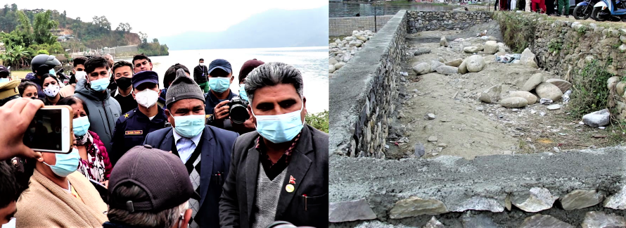 पोखरा । पोखरा १८ खपौदी स्थित फेवातालको किनारमा बनेको संरचना हटाउन पोखरा महानरपालिकाले निर्देशन दिएको छ । तालको मापदण्ड विपरीत अतिक्रमण गरि पर्खाल बने पछि महानगरले पर्खाल भत्काउन निर्देशन दिएको हो । गण्डकी प्रदेश सरकारका उर्जा मन्त्री हरिशरण आचार्य सहित...