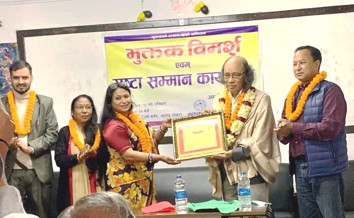 पोखरा । ‘मुक्तक सागर सम्मान’ प्रसिद्ध साहित्यकार तथा प्राज्ञ सरूभक्तलाई अर्पण गरिएको छ । मुक्तकको उत्थान र विकासमा क्रियाशिल मुक्तक मन्च केन्द्रिय समिती पोखरा र मुक्तक सागर त्रैमासिक पत्रिकाले संयुक्तरुपमा पोखरामा शनिबार आयोजित कार्यक्रममा सरूभक्तलाई...