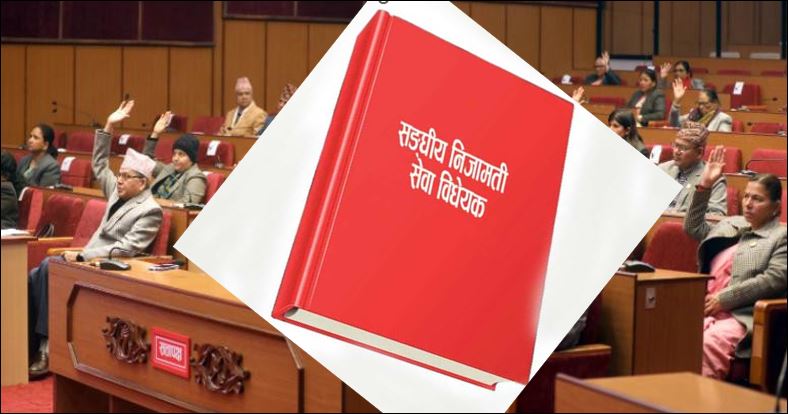 काठमाडौं । राष्ट्रियसभा बैठकमा ‘सङ्घीय निजामती सेवा विधेयक, २०८० सम्बन्धी विधायन व्यवस्थापन समितिको प्रतिवेदन’ पेस भएको छ । समिति सभापति तुलसाकुमारी दाहालले सभामा समितिको प्रतिवेदनसहित विधेयक पेस गरेकी हुन् ।विधेयक आजै पारित गरेर प्रतिनिधिसभामा...