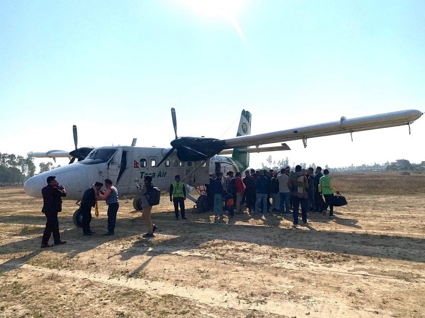 टीकापुर । सत्ताइस वर्षदेखि बन्द अवस्थामा रहेको कैलालीको टीकापुर विमानस्थल नियमित सञ्चालनमा आएको छ । आज तारा एयरको वाइटी १७०१ नम्बरको ट्वीनअटर विमानमा चालक दलका तीनसहित छ कर्मचारी र १२ यात्रु बोकेको विमान दिउँसो १ः ४४ बजे टीकापुर विमानस्थलमा अवतरण गरेसँगै...