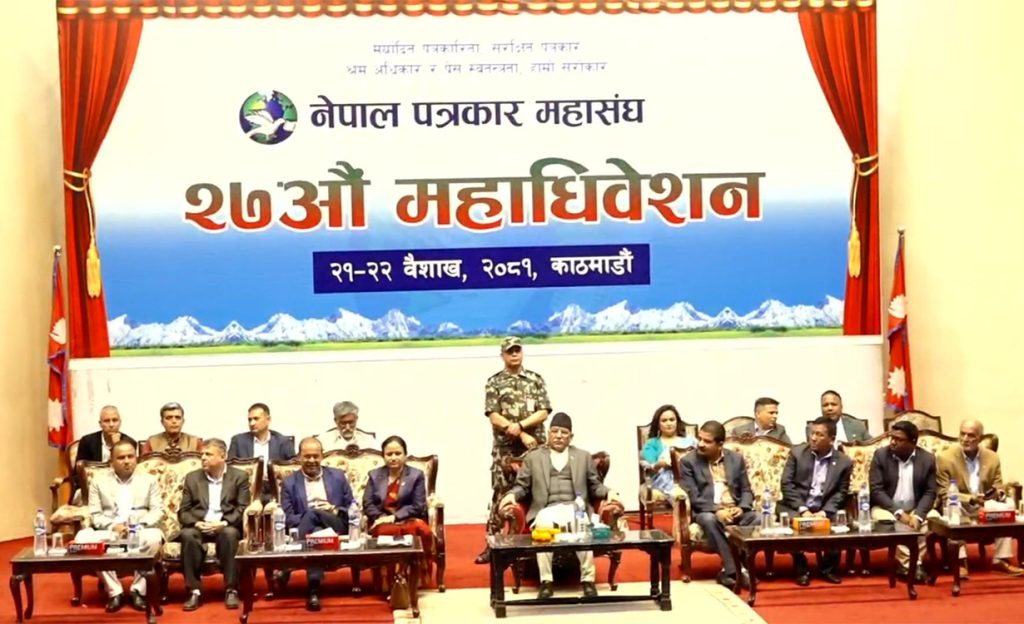 काठमाडौं । नेपाल पत्रकार महासंघको केन्द्रीय महाधिवेशन काठमाडौंमा सुरु भएको छ । आज र भोलि गरी २ दिनसम्म चल्ने महाधिवेशनलाई प्रधानमन्त्री पुष्पकमल दाहाल प्रचण्डले उद्घाटन गरे । महाधिवेशन राष्ट्रिय सभागृहमा भइरहेको छ । त्यसअघि पत्रकारहरुले शान्तिवाटिकाबाट...