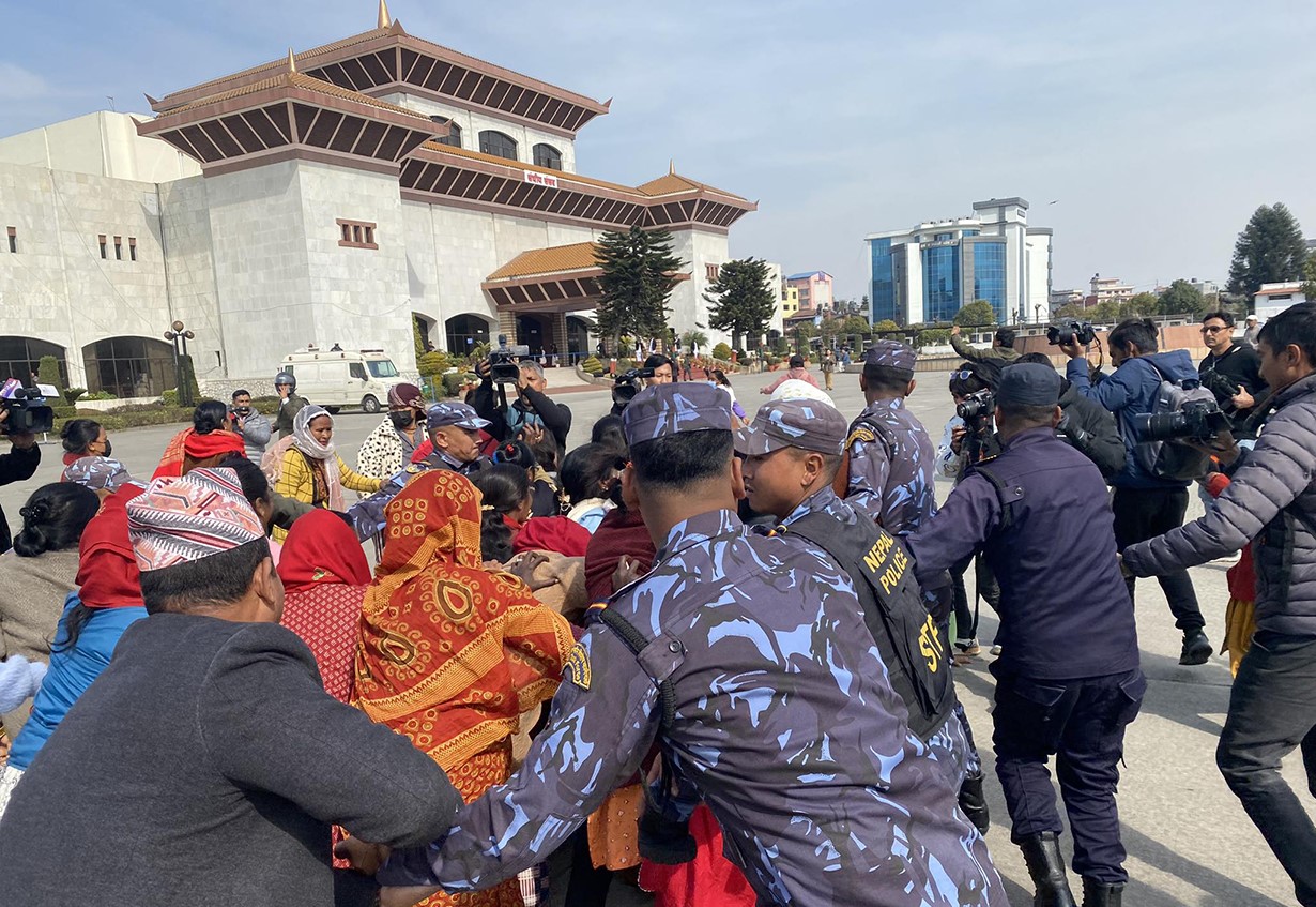 कांठमाडौं । मिटरब्याज पीडितहरु संसद भवन परिसरमै प्रवेश गरेका छन् । नयाँ बानेश्वरस्थित संघीय संसद भवनमा संसद बैठक चलिरहेका बेला मिटरब्याज पीडितहरु संसद भवन परिसरमा पुगेर नाराबाजी गरेका हुन् ।मिटरब्याज पीडित विगत २८ दिनदेखि प्रर्दशनमा रहेका छन् । हिजो...