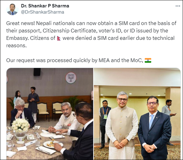 काठमाडौं । नेपालीहरुले अब भारतमा भारतीय सिमकार्ड लिन पाउने भएका छन् । भारतका लागि नेपाली राजदूत डा.शंकरप्रसाद शर्माले सामाजिक सन्जाल एक्समार्फत् यो जानकारी दिएका हुन् । उनका अनुसार अब नेपाली नागरिकहरुले आफ्नो राहदानी, नागरिकताको प्रमाणपत्र, मतदाता परिचय...