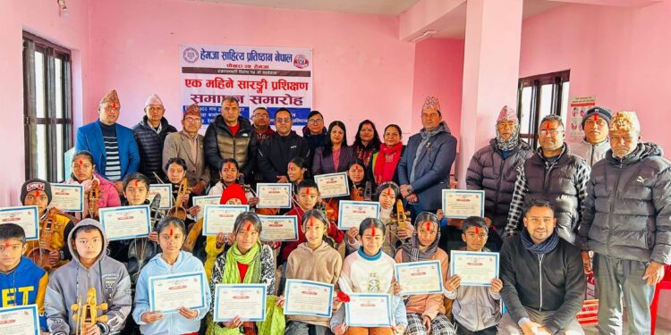 पोखरा । एक महिने सारंगी प्रशिक्षण कार्यक्रम सम्पन्न भएको छ । गण्डकी प्रज्ञा–प्रतिष्ठानले हेम्जा साहित्य प्रतिष्ठानसँगको सहकार्यमा कास्कीको हेम्जामा यो कार्यक्रम आयोजना गरेको थियो । प्रशिक्षण कार्यक्रममा गन्धर्व समुदायका २५ जना बालबालिकाको सहभागी बनेका...