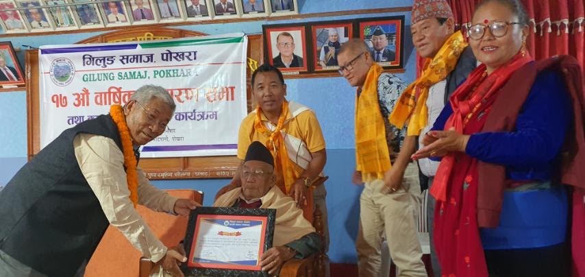 पोखरा । लमजुङको क्होंलासोथर ९, गिलुङबाट पोखरा आइ बसोबास गर्नेहरुको संस्था गिलुङ समाज पोखराले शताब्दी पितालाई सम्मान गरेको छ । समाजले आफ्नो १७ औं वार्षिक साधारण सभाको अवसरमा शताब्दी उमेर पार गरेका शताब्दी पिता गुम्बसिंह गुरुङलाई सम्मानित गरेको हो । पुरानो...