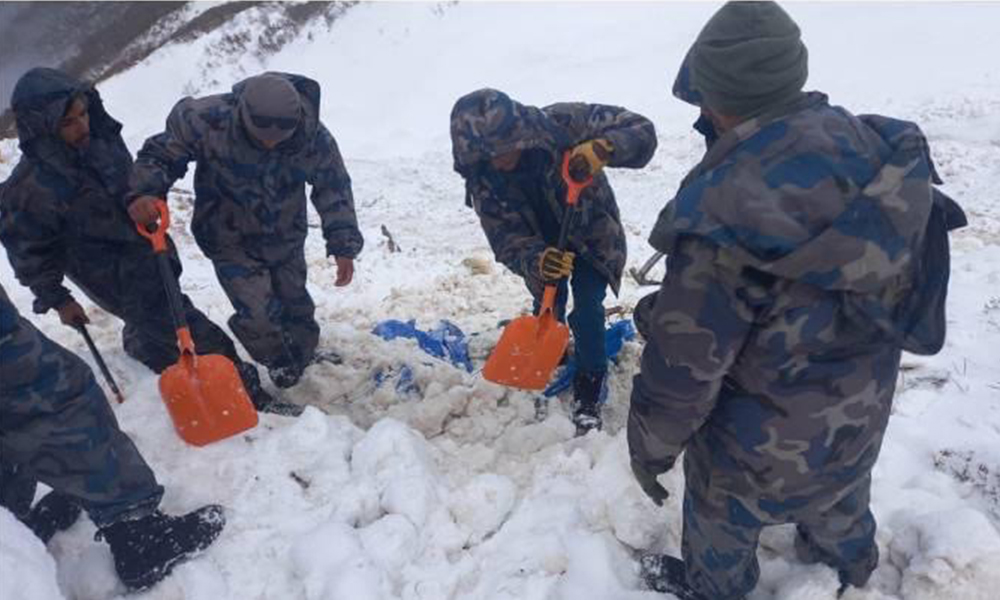 दार्चुलाको व्याँसमा हिमपहिरोमा बेपत्ता भएका पाँचमध्ये तीनजनाको शव भेटिएको उद्धारमा खटिएका शसस्त्रले बताएका छन् । दुई महिला र एक पुरुषको शव भेटिएको हो। खोज तथा उद्धारमा खटिएका छाङरुस्थित सशस्त्र प्रहरी बल ५० नम्बर गुल्मका गुल्मपति सशस्त्र प्रहरी नायब उपरीक्षक...