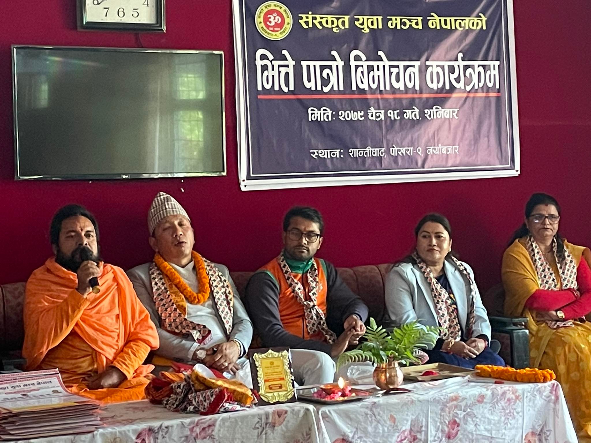 पोखरा । संस्कृत युवा मञ्च नेपालद्वारा प्रकाशित वि.सं २०८० सालको भित्ते–पात्रो बिमोचन भएको छ । पोखरा–९ शान्तिघाट जेष्ठ नागरिक भवनको सभाहलमा भएको कार्यक्रमा गण्डकी प्रदेशका सामाजिक विकाश तथा स्वास्थ्य मन्त्री पञ्चराम गुरुङले भित्ते पात्रको विमोचन गरेका...