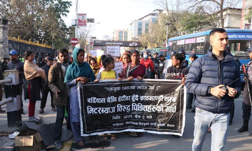 काठमाडौं । पदैल हिड्दै काठमाडौं पुगेका मिटरब्याज पीडित बालुवाटारतिर लागेका छन् । बर्दिबासबाट पैदल यात्रा मार्फत ११औँ दिनमा काठमाडौँ पुगेका पीडितहरूले आजको रात सडकमै काटेका छन् । बिहान सबेरै उनीहरू बालुवाटारतर्फ लागेका हुन् । आज प्रधानमन्त्री निवास बालुवाटारमा...