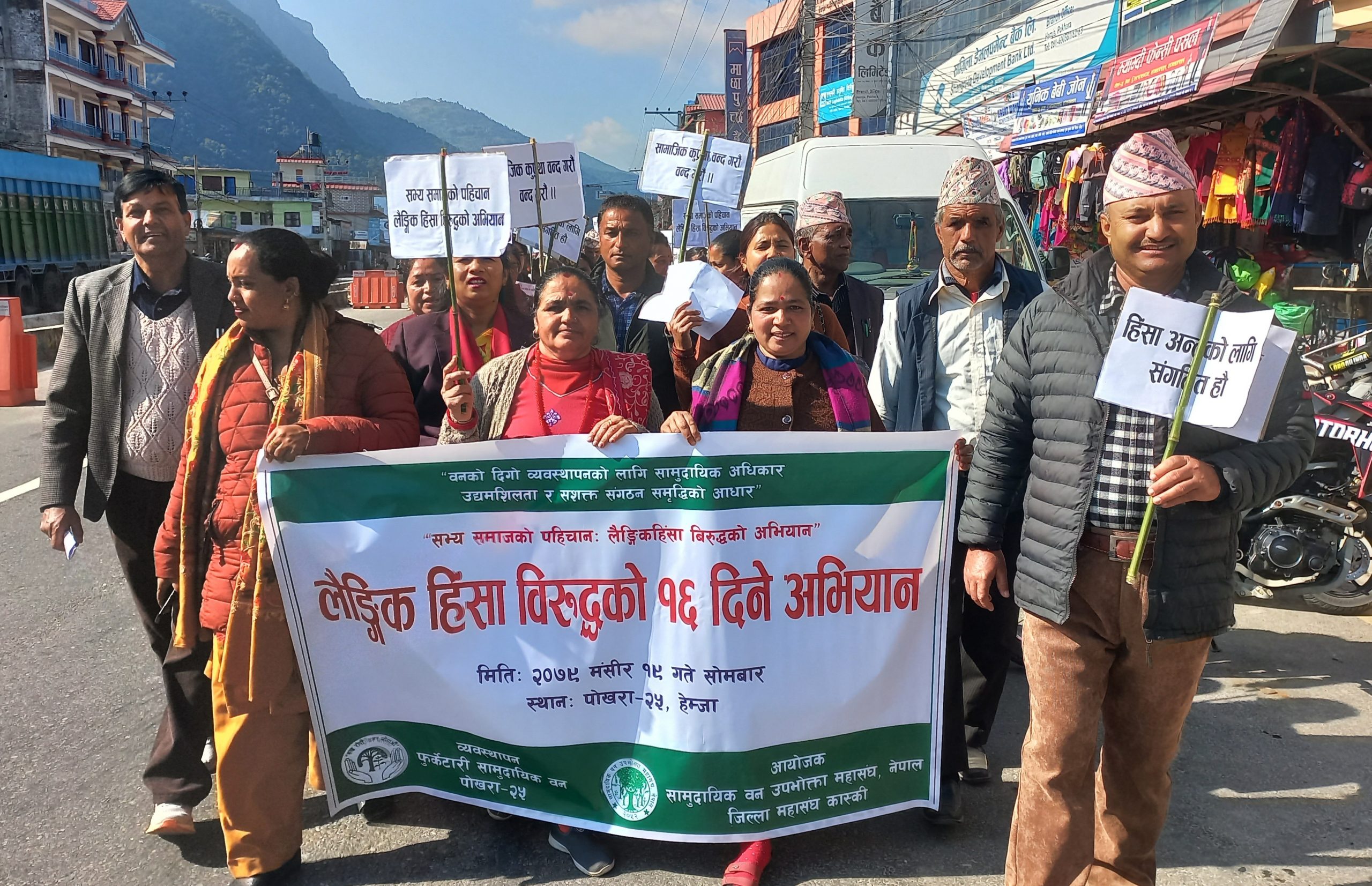 पोखरा । सामुदायिक वन उपभोक्ता महासंघ नेपालले लैङ्गिक हिंसा न्यूनीकरणको लागि राष्ट्रव्यापी रुपमा १६ दिने अभियान सञ्चालन गरेको छ । “सभ्य समाजको पहिचानः लैङ्गिक हिंसा विरुद्धको अभियान” भन्ने मूल नारा सहित सञ्चालित अभियानमा अन्तर्गत सचेतना ¥याली, अन्तरकृया,...