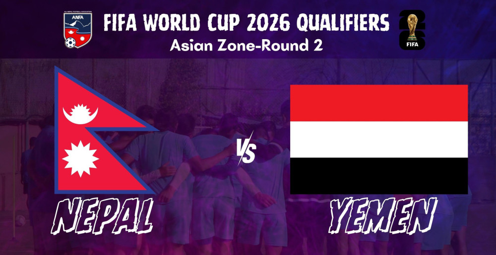 काठमाडौँ । फिफा विश्वकप २०२६ दोस्रो चरण र एएफसी एशिया कप २०२७ को संयुक्त छनोटअन्तर्गत नेपालले आज यमनसँग प्रतिस्पर्धा गर्दैछ । खेल त्रिपुरेश्वरस्थित दशरथ रङ्गशालामा साँझ ७ बजे सुरु हुनेछ । नेपाली राष्ट्रिय फुटबल टोलीका मुख्य प्रशिक्षक भिन्सेन्जो अल्र्बटो...