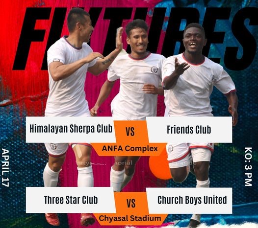 काठमाडौं । शहीद स्मारक ‘ए’ डिभिजन लिग फुटबल अन्तर्गत आज दुई खेल हुँदैछन्। नवौँ चरणको अन्तिम दुई खेलमध्ये एक खेल एन्फा कम्प्लेक्स र एक खेल च्यासल मैदानमा दिउँसो ३ बजे सुरु हुनेछ। सातदोबाटोस्थित एन्फा कम्प्लेक्समा हिमालयन शेर्पा क्लब र फ्रेण्ड्स क्लबबीच...