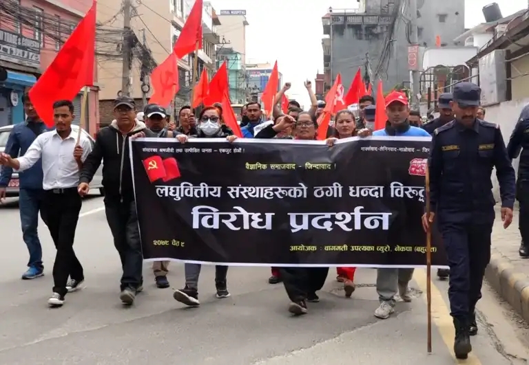 काठमाडौं । लघुवित्तको ज्यादतीविरुद्ध नेकपा बहुमतले काठमाडौंमा विरोध प्रदर्शन गरेको छ । लघुवित्तको कारण लाखौ जनताले सास्ती भोग्नुपरेको भन्दै नेकपा बहुमतको बागमती उपत्यका व्युरोले काठमाडौंको कमलपोखरीस्थित निर्धन उत्थान लघुवित्तको कार्यालय अगाडि प्रदर्शन...