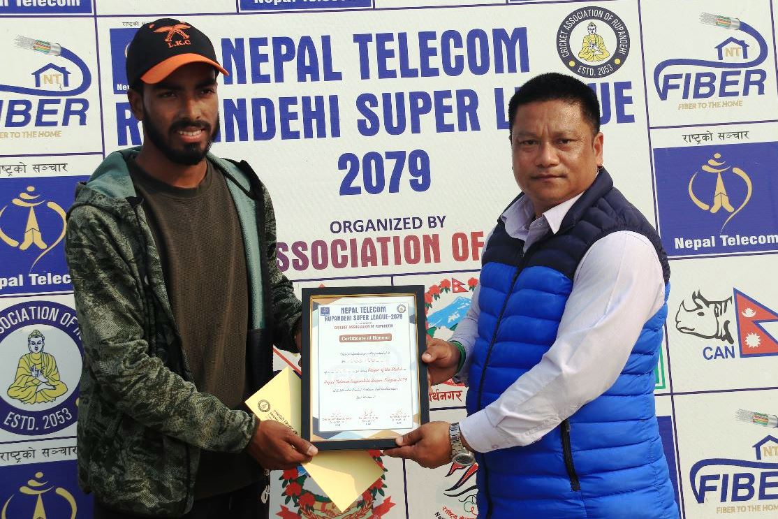 भैरहवा । रुपन्देही क्रिकेट संघको आयोजनामा भैरहवामा जारी नेपाल टेलिकम रुपन्देही सुपरलिग क्रिकेट प्रक्रियोगिता अन्तर्गत डिभिजन ‘ए’को सोमबारको खेलमा लुम्बिनी खुकुरी क्रिकेट क्लब विजयी भएको छ । खुकुरीले तिलोत्तमा क्रिकेट क्लबलाई ७ विकेटले पराजित गर्दै जित...