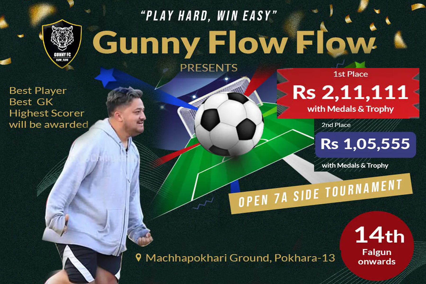 पोखरा । गन्नी एफसी फुटबल क्लवको आयोजनामा ‘प्रथम फ्लो फ्लो कप’ सेभेन ए साइड खुल्ला फुटबल प्रतियोगिताको तयारी पुरा भएको छ । पोखरा महानगरपालिका १३ माछापोखरी खेल मैदानमा फागुन (भोली) १४ गते देखि २० गतेसम्म सञ्चालन हुने प्रतियोताको सम्पूर्ण तयारी पूरा भएको...