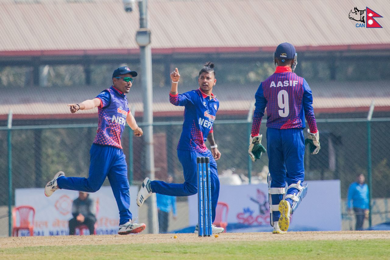 काठमाडौँ । आईसीसी लिग टू अन्तर्गतको त्रिकोणात्मक सिरिजमा आज शनिबार नेपाल र नामिबियाबीचका खेल जारी छ। खेल बिहान ९ बजेबाट टियु मैदान कीर्तिपुरमा खेल सुरु भएको हो। लगातार तेस्रो जितको खोजीमा रहेको नेपालले पहिलो खेलमा नामिबियालाई तथा शुक्रबार भएको खेलमा...