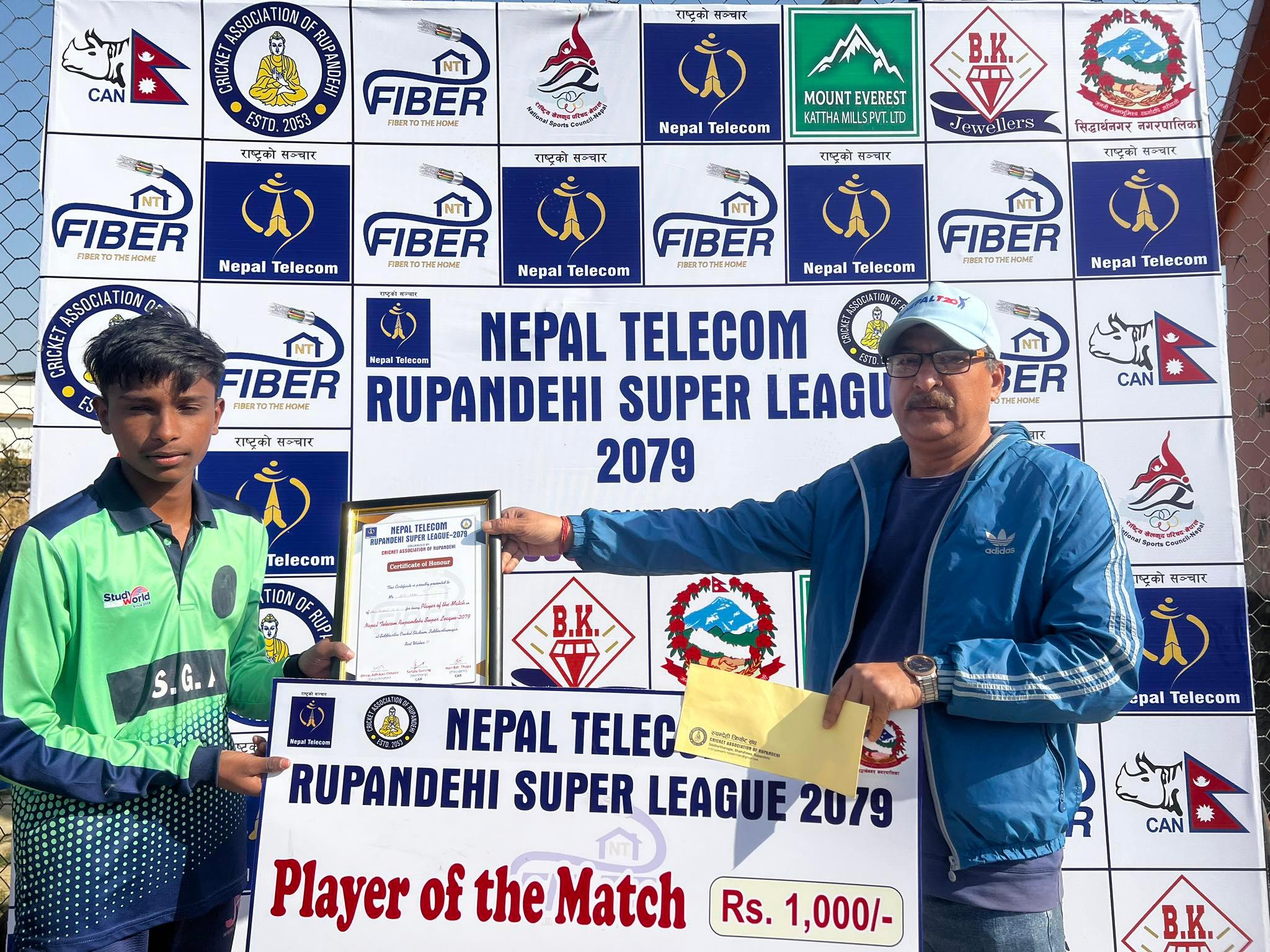 भैरहवा । भैरहवामा शनिबारदेखि नेपाल टेलिकम रुपन्देही सुपर लिग क्रिकेट प्रक्रियोगिता सुरु भएको छ । शनिबार भएको उद्घाटन खेलमा नेपथ्य ज्ञानोदय क्रिकेट क्लब नयाँमिलले बिजयी सुरुवात गरेको छ । नेपथ्यले देबदह क्रिकेट युनिट देबदहलाई ६८ रनले पराजित गर्दै जित निकालेको...
