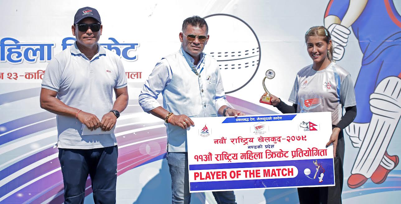 पोखरा । नवौं राष्ट्रिय महिला क्रिकेट प्रतियोगितामा एपीएफ क्लवले गण्डकी प्रदेशलाई ९ विकेटले पराजित गरेको छ । बिहीबार पोखरा रंगशालामा भएको खेलमा गण्डकीले प्रस्तुत गरेको २७ रनको सामान्य लक्ष्य एपीएफले १ सय ६ बल बाँकि रहँदै प्राप्त ग¥यो । एपीएफको तर्फबाट...