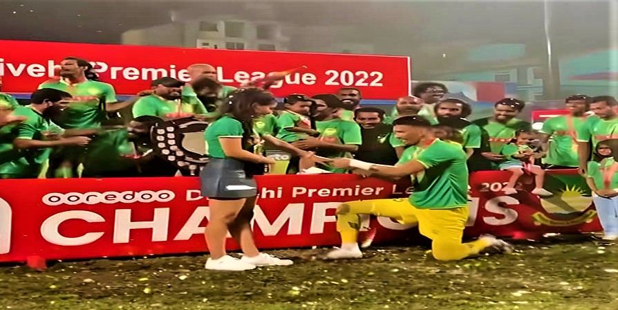 काठमाडौं। नेपाली राष्ट्रिय टोलीका पूर्वकप्तान एवं गोलरक्षक किरण चेम्जोङले फुटबल मैदानमै आफ्नी प्रेमिका कन्चन निरौलालाई विवाह प्रस्ताव राखेका छन् । माल्दिभ्समा ब्यवसायिक फुटबल खेलिरहेका किरणले धिवेही प्रिमियर लिगको उपाधि जितेको खुसियाली मनाउने क्रममा...