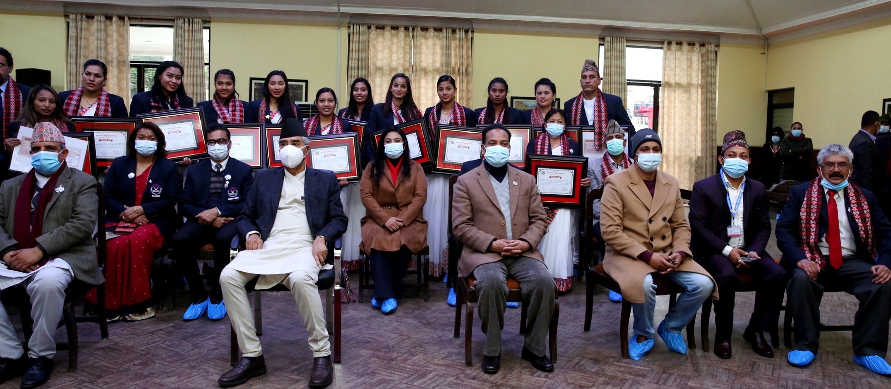 काठमाडौं । प्रधान मन्त्री शेरवहादुर देउवाले शुक्रबार राष्ट्रिय महिला भलिबल टोलीलाई सम्मान तथा नगद पुरस्कार प्रदान गरेका छन् । बंगलदेशको ढाकामा २०८७ पौष ६ देखि १६ गते सम्म संचालन भएको बंगबन्धु एशियन सेन्ट्रल जोन महिला भलिबल च्यालेन्ज कपको विजेता महिला...