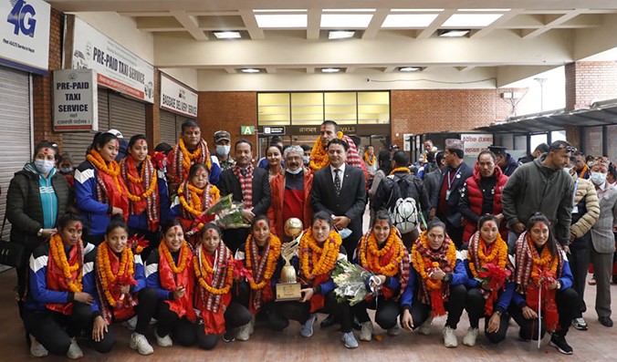 काठमाडौं। बंगलादेशको ढाकामा भएको एसियन सेन्ट्रल जोन महिला भलिबल च्यालेन्ज कपको उपाधि जितेर नेपाली महिला राष्ट्रिय भलिबल टिम स्वदेश फर्किएको छ । उपाधि जितेको नेपाली महिला राष्ट्रिय भलिबल टोली र चौथो भएको पुरुष टोली बिहीबार स्वदेश फर्किएको हो ।उनीहरुलाई...