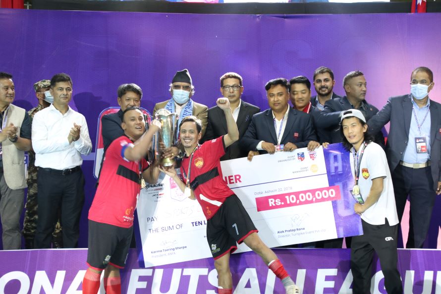 पोखरा । पहिलो सस्करणको राष्ट्रिय ‘ए’ डिभिजन फुटसल लिगको उपाधि ्स्पोर्ट्स क्यासल पोखराले जितेको छ । शखंमुल फुटसललाई ४–२ ले हराउँदै स्थानिय टिम स्पोर्ट्स क्यासलले उपाधि जितेको हो । पोखरा रंगशालास्थित बहुउद्देश्यीय कभर्डहलमा शुक्रबार भएको फाइनलमा स्पोर्ट्स...