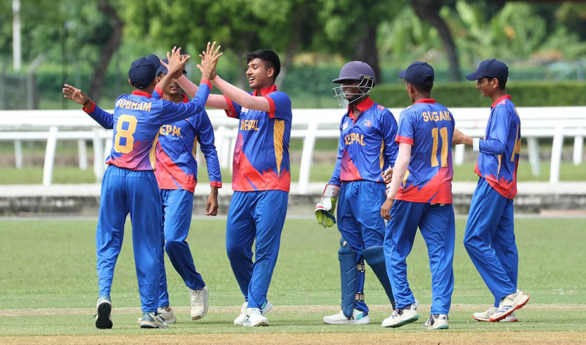नेपाल एसीसी यू–१६ इस्ट जोन कपको फाइनलमा प्रवेश गरेको छ । बिहीबार भएको सेमिफाइनलमा मलेसियालाई ९ विकेटले हराउँदै नेपाल उपाधिनजिक पुगेको हो । मलेसियाले दिएको ९१ रनको लक्ष्य नेपालले ११.४ ओभरमा १ विकेटको क्षतिमा पूरा गर्यो ।त्यसअघि टस हारेर पहिले ब्याटिङको...