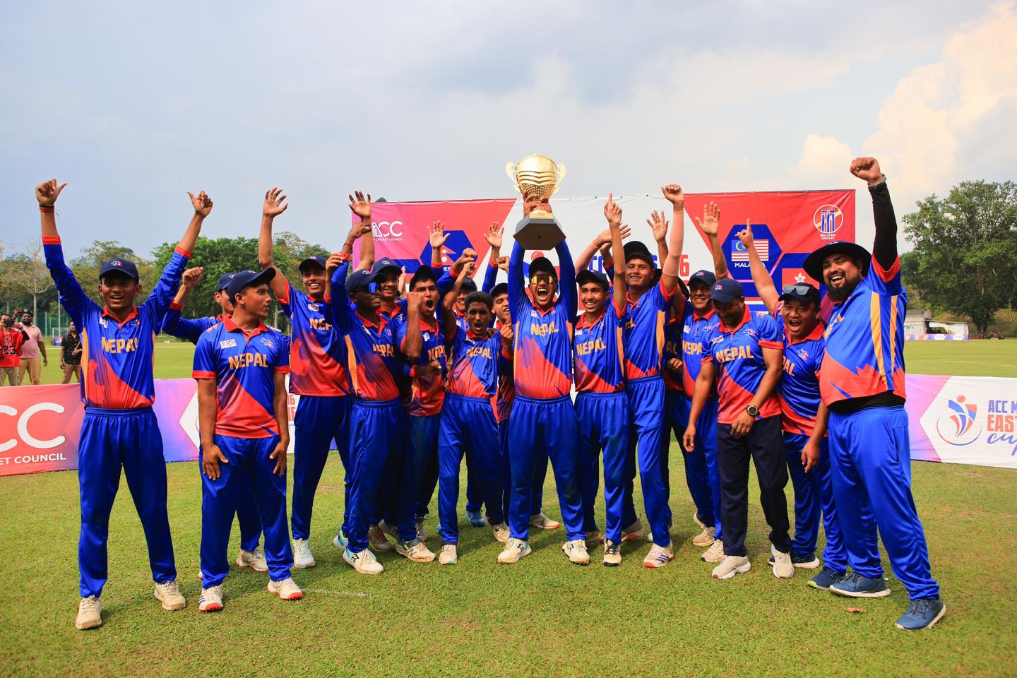पोखरा । नेपालले एसीसी यू–१६ पुरुष इस्ट जोन कपको उपाधि जितेको छ । सिंगापुरलाई २ विकेटले हराउँदै नेपाली टोलीले लगातार दोस्रोपटक उक्त उपाधि हात पारेको हो । अघिल्लो संस्करणमा पनि नेपालले मलेसियालाई हराउँदै यो उपाधि जितेको थियो । शनिबार भएको फाइनल खेलमा...