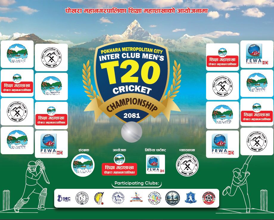 पोखरा । पोखरामा मंगलबारदेखि दोश्रो अन्तर क्लव पुरुष टि–२० क्रिकेट प्रतियोगिता २०८१ हुने भएको छ । पोखरा महानगरपालिका शिक्षा महाशाखाको आयोजना तथा पोखरा महानगरपालिका क्रिकेट संघको संयोजन तथा व्यवस्थापनमा मंगलबार फागुन २० गतेदेखि शुरु हुने प्रतियोगिता...