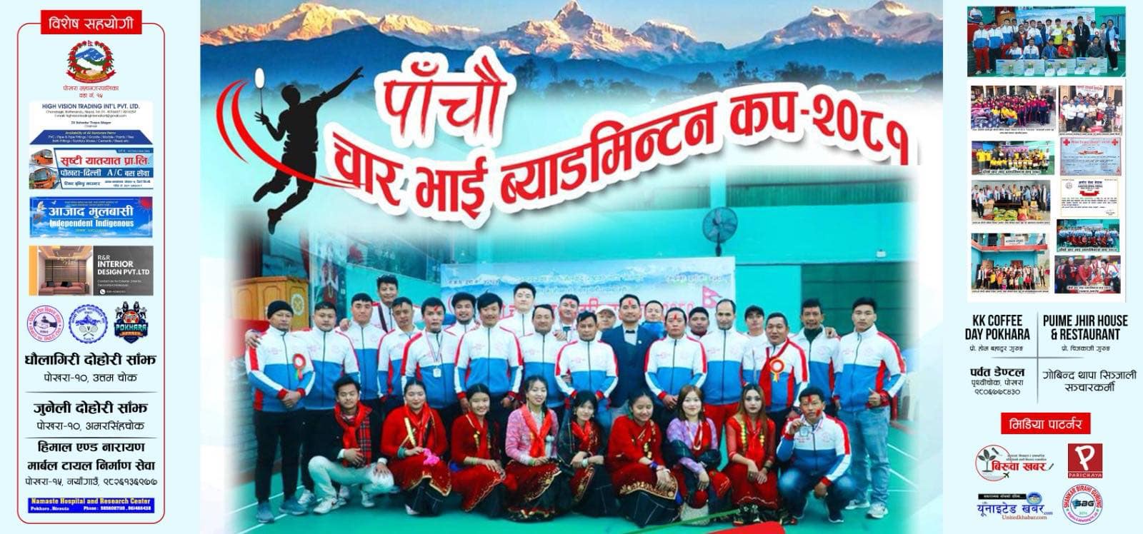 पोखरा । पाचौँ चार भाई व्याडमिन्टन कप २०८१ को तयारी पुरा भएको छ । चार भाई युवा क्लवको आयोजनामा ताङलेकोट तमु समाज नयाँगाउँको हलमा हुने प्रतियोगिता यही माघ ११ र १२ गते हुदैछ । कपका लागि गण्डकी प्रदेश र अन्य प्रदेशका विभिन्न जिल्लाबाट प्रतियोगी सहभागी हुनेछन...