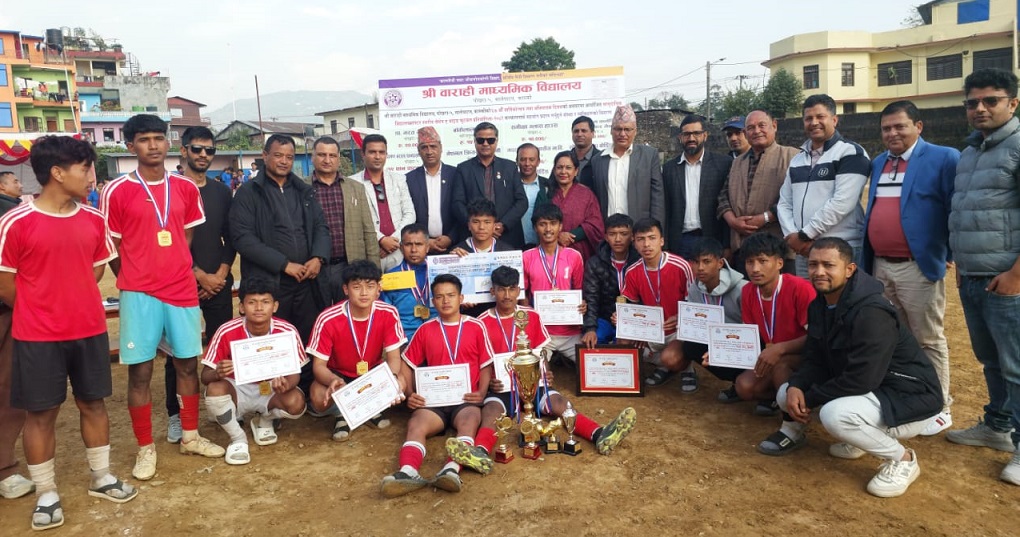 पोखरा । बाराही माध्यमिक विद्यालयले आयोजना गरेको क्लस्टर स्तरीय फुटबल प्रतियोगिताको उपाधि कालिका मावि रामबजारले जितेको छ । कालिकाले विन्ध्यवासीनि मावि पोखरा १६ लाई ट्राइबेकरमा हराउदै उपाधि जितेको हो । निधारी समयमा गोल रहित बराबरी भएपछि खेल ट्राइबेकरमा...