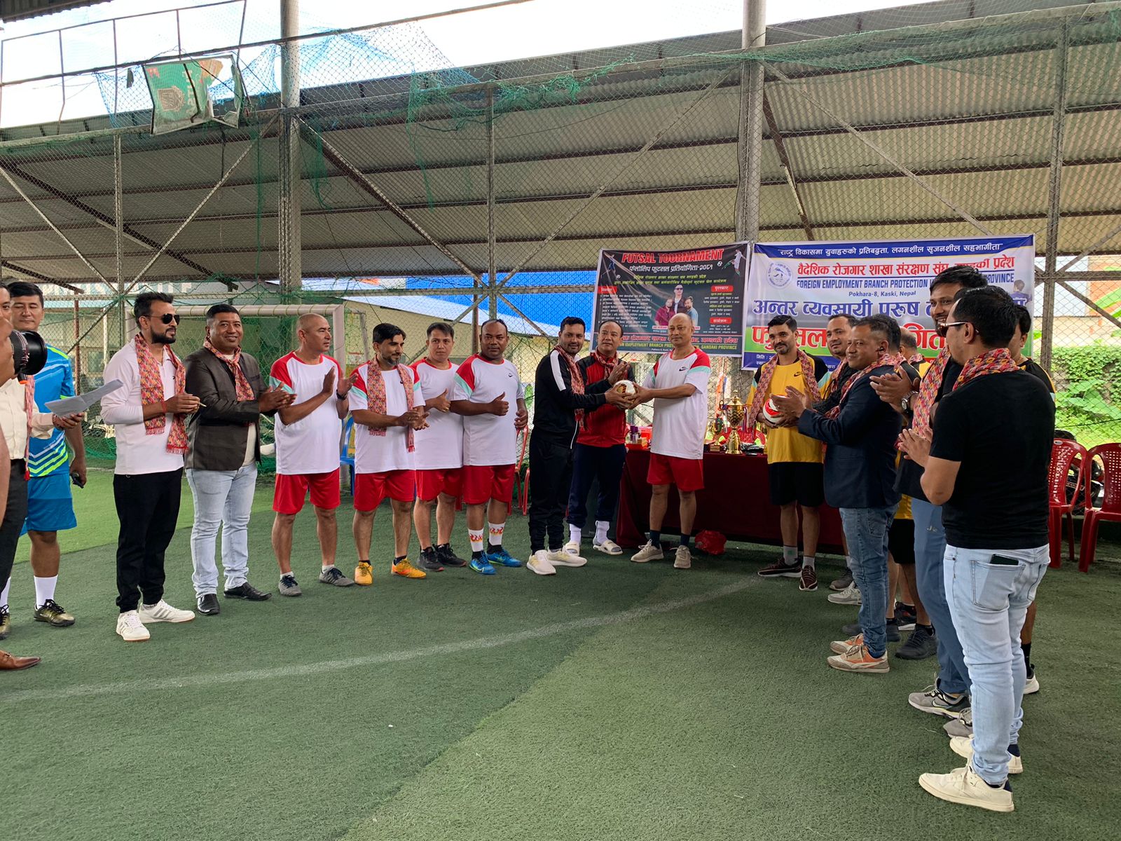 पोखरा । बैदेशिक रोजगार शाखा संरक्षण संघ गण्डकीको आयोजनामा भएको फेलोसिप फुटसल प्रतियोगितामा पोखरा थन्र्डस प्रथम भएको छ । १० टिमको सहभागिता रहेको प्रतियोगिताको फाइनलमा पोखरा थन्डर्सले एसबि गाइजलाई १–० गोल अन्तरले पराजित गरि उपाधी जितेको हो । यसै गरि...
