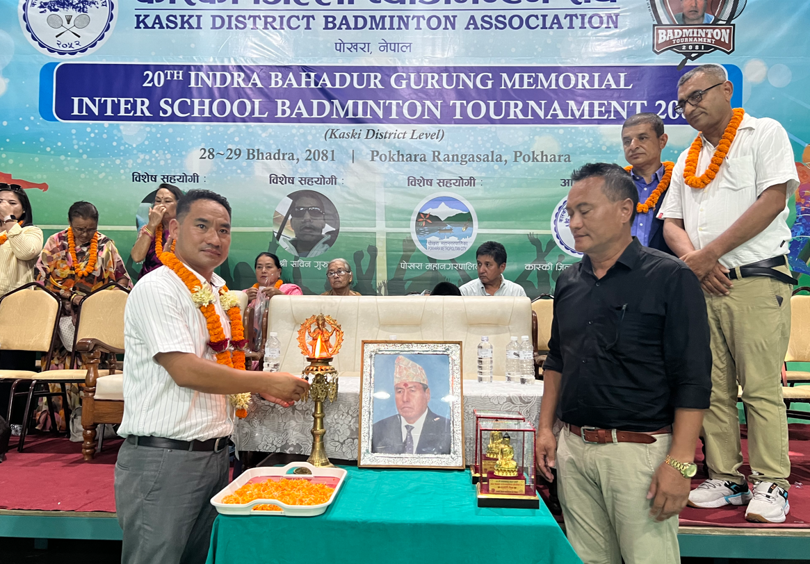 पोखरा । पोखरामा शुक्रबार देखि दुई दिने २० औ इन्द्र बहादुर गुरुङ मेमोरियल विद्यालय स्तरीय ब्याटमिन्टन प्रतियोगिता सुरु भएको छ । कास्की जिल्ला ब्याटमिन्टन संघको आयोजनामा शुक्रबार देखि पोखराको रंगशालामा रहेको ब्याटमिन्टन हलमा प्रतियोगिता सुरु भएको हो...