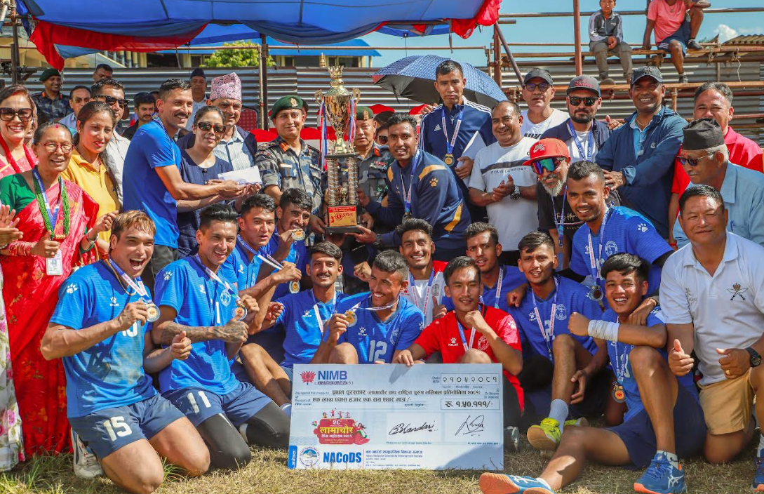 पोखरा । लामाचौर कप भलिबल प्रतियोगिताको पुरुषतर्फ नेपाल पुलिस क्लब च्याम्पियन बनेको छ । शनिबार सम्पन्न निकै रोमाञ्चक फाइनल खेलमा एपिएफलाई ३–२ को सेटमा हराउँदै पुलिसले उपाधि चुमेको हो ।नव आदर्श सामुदायिक विकास समाजले आफ्नो वार्षिकोत्सव तथा हरितालिका तीजको...