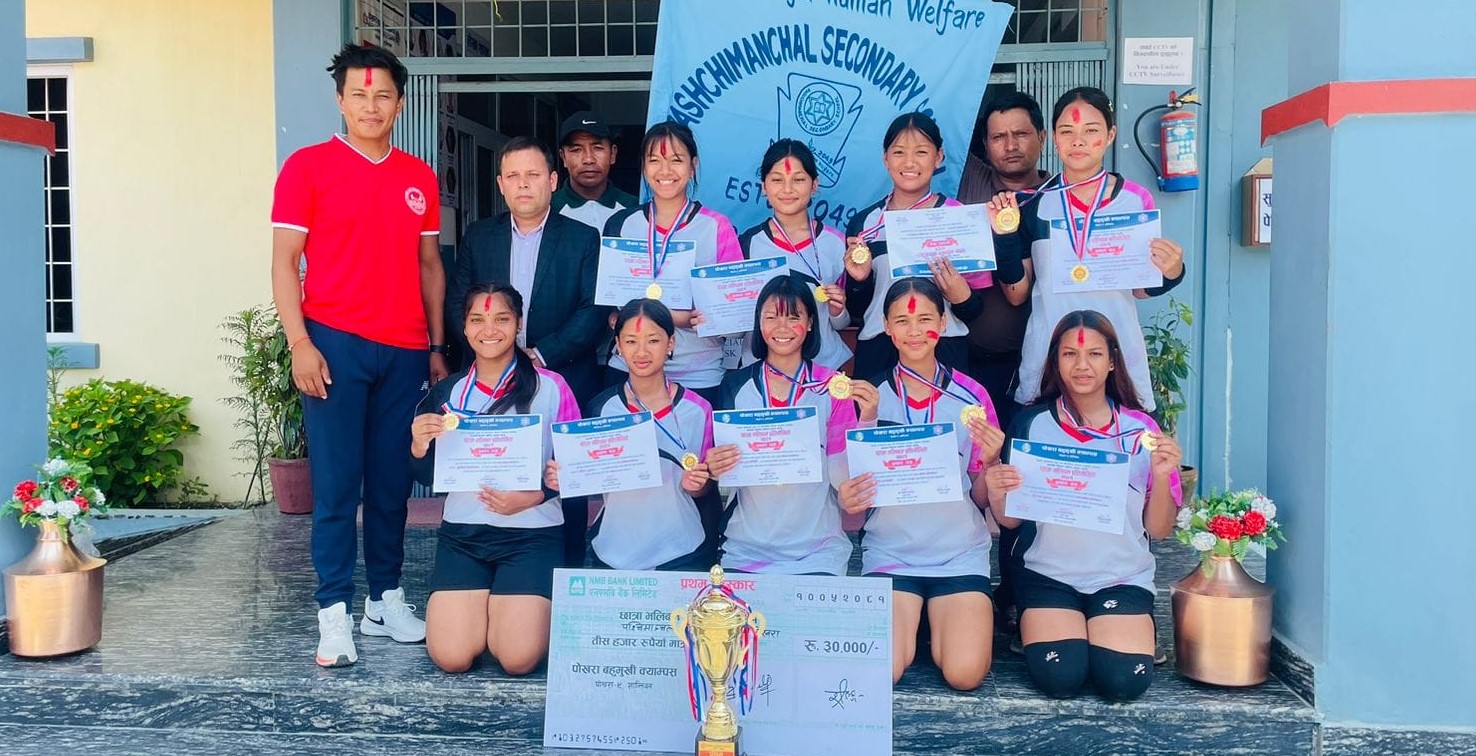 पोखरा । पश्चिमाञ्चल माविले कास्की जिल्ला अन्तर मावि स्तरीय छात्रा भलिवल प्रतियोगिताको उपाधि जितेको छ। सोमबार भएको फाइनल खेलमा पोखरा–४, गैह्रपाटनस्थित पश्चिमाञ्चल माविले पोखराकै न्यू ग्यालेक्सी माविलाई सोझो सेटमा पराजित गरेको हो। पश्चिमाञ्चलले २५–९,...