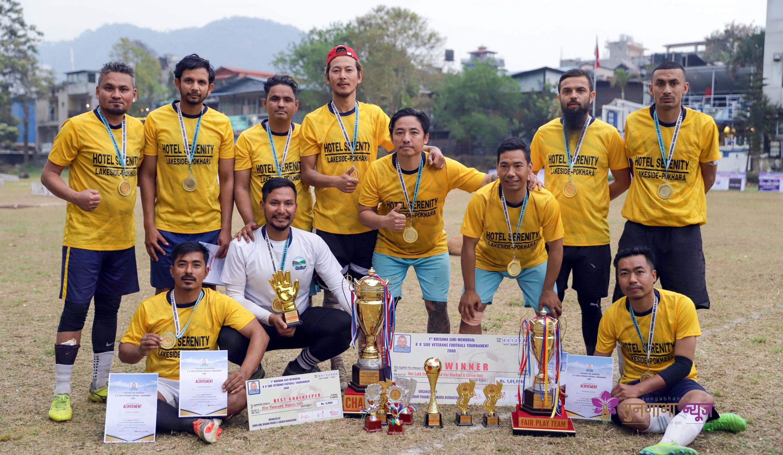 पोखरा । पूर्व फुटबल रेफ्री स्वर्गीय कृष्ण गिरीको सम्झनामा पोखराको बाराहीघाटमा सम्पन्न पहिलो संस्करणको एट ‘ए’ साइड भेट्रान फुटबल प्रतियोगिताको उपाधि लेकसाइड पहेंलोले जितेको छ । बाराहीघाटस्थित खेलमैदानमा आज भएको फाइनल खेलमा गार्डेन एफसीलाई पेनाल्टी सुटआउटमा...