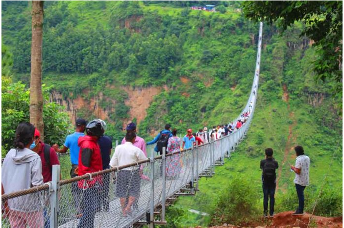 गलकोट । बागलुङको बांगेचौरदेखि पर्वतको पाङ अदुवाबारीसम्म बनेको विश्वकै लामो दाबी गरिएको झोलुंगे पुलले दिनदिनै पर्यटकको ध्यान तान्दैँ आएको छ । कुनै समय सुनसान, कालोपाती र झाडीले भरिएको पर्वतको कुश्मा नगरपालिका १ अदुवाबारीमा पुल बनेसँगै पर्यटकको चहलपहल दिनानुदिन...